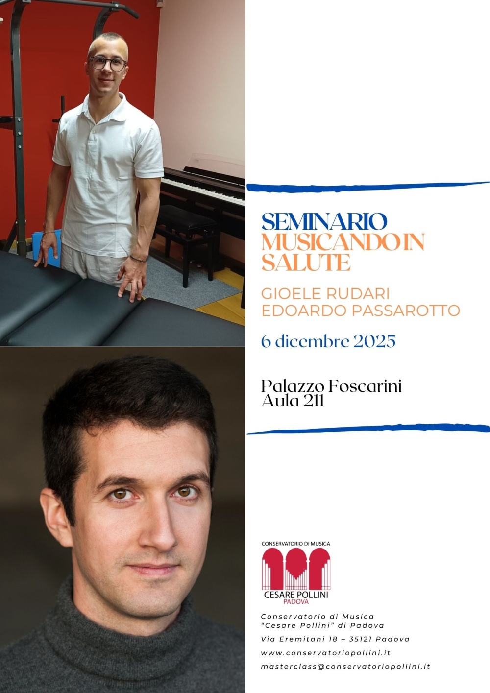 Gioele Rudari, clarinettista e fisioterapista, si diploma presso il conservatorio di Brescia nel 2011 per poi continuare gli studi musicali all’Accademia Nazionale di Santa Cecilia con Alessandro Carbonare, che lo seguirà poi per gli anni a venire; dal 2012 al 2014 completa un Master in Music Performance presso il conservatorio superiore di Zurigo (ZHdK) e prende parte all’orchestra giovanile svizzera per tre anni. Dopo essersi accorto di alcune difficoltà tecniche durante la pratica strumentale, all’età di 26 anni sopravviene la diagnosi di distonia focale alla mano sinistra e comincia ad interessarsi all’ambito musica e medicina. Nel 2018 completa un Master di I livello in Musicoterapia presso l’università di Pavia e un “Corso di perfezionamento in Musica e Musicoterapia in Neurologia” presso l’Università di Ferrara. Nel frattempo ha interrotto l’attività musicale professionale e ha proseguito con l’insegnamento del clarinetto presso alcune scuole di musica. Nel 2020 inizia un percorso di laurea in fisioterapia presso l’Università degli studi di Brescia, che conclude nel 2023 con una tesi scritta presso l’ “Institute of Music Physiology and Musicians’ Medicine” di Hannover (Germania) dal titolo "Effects of physiotherapy interventions on performance-related musculoskeletal pain in music students”. Intenzionato a occuparsi di salute dei musicisti, si sta tuttora specializzando nella riabilitazione della mano e dell’arto superiore. Dal 2024 al 2025 ha svolto attività fisioterapica presso l’Istituto Clinico Sant’Anna di Brescia, dove si è occupato di riabilitazione specialistica della mano e ortopedica generica. Dal gennaio 2025 ad oggi svolge attività presso una RSA e presso lo studio “Esclusiva Mano” a Brescia, il cui focus è la riabilitazione della mano e dell’arto superiore, in stretta collaborazione con medici ortopedici specializzati. Ha partecipato a diversi seminari e corsi di formazione come partecipante e relatore. Credendo fortemente nel bisogno e nella necessità di affiancare i musicisti dal punto di vista sanitario nel loro percorso, assieme ai colleghi e amici Edoardo Passarotto, pianista e neuroscienziato, e Luca Mazzon, flautista e psicologo, hanno iniziato, in sinergia, attività di divulgazione e trattamento sulla salute dei musicisti. Nel marzo 2025 hanno tenuto un seminario di una giornata presso il conservatorio di Verona dal titolo “Laboratorio di fisioterapia e psicologie applicate”, riscuotendo curiosità ed interesse di studenti ed insegnanti.