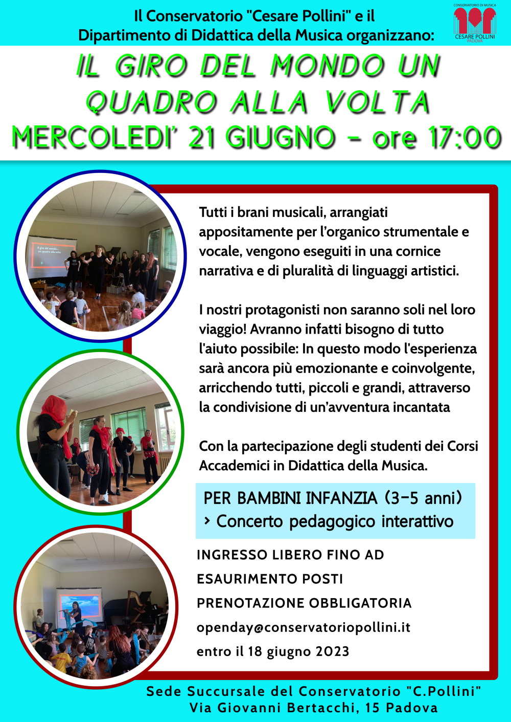 Laboratorio pedagogico per bambini dell’infanzia, futuri studenti interessati al percorso in Didattica della Musica. Ingresso libero su prenotazione entro il 18 giugno. maggiori info: openday@conservatoriopollini.it