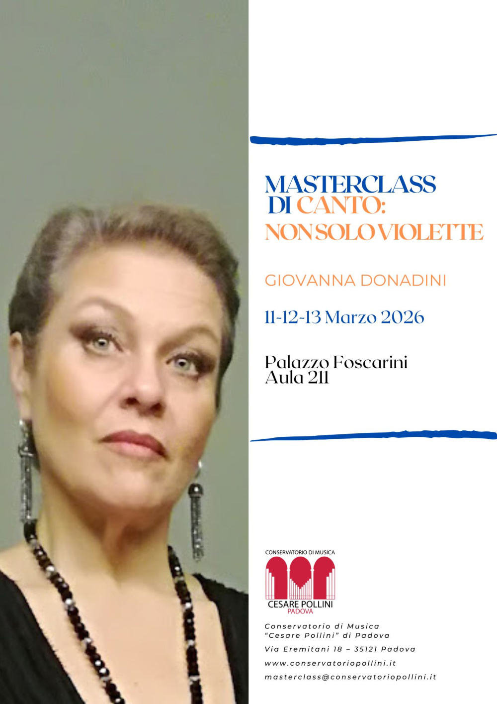 intestato al Conservatorio Statale di Musica “C. Pollini” di Padova indicando come causale “Masterclass di ... ”. La copia della ricevuta del versamento dovrà essere allegata alla domanda di iscrizione.