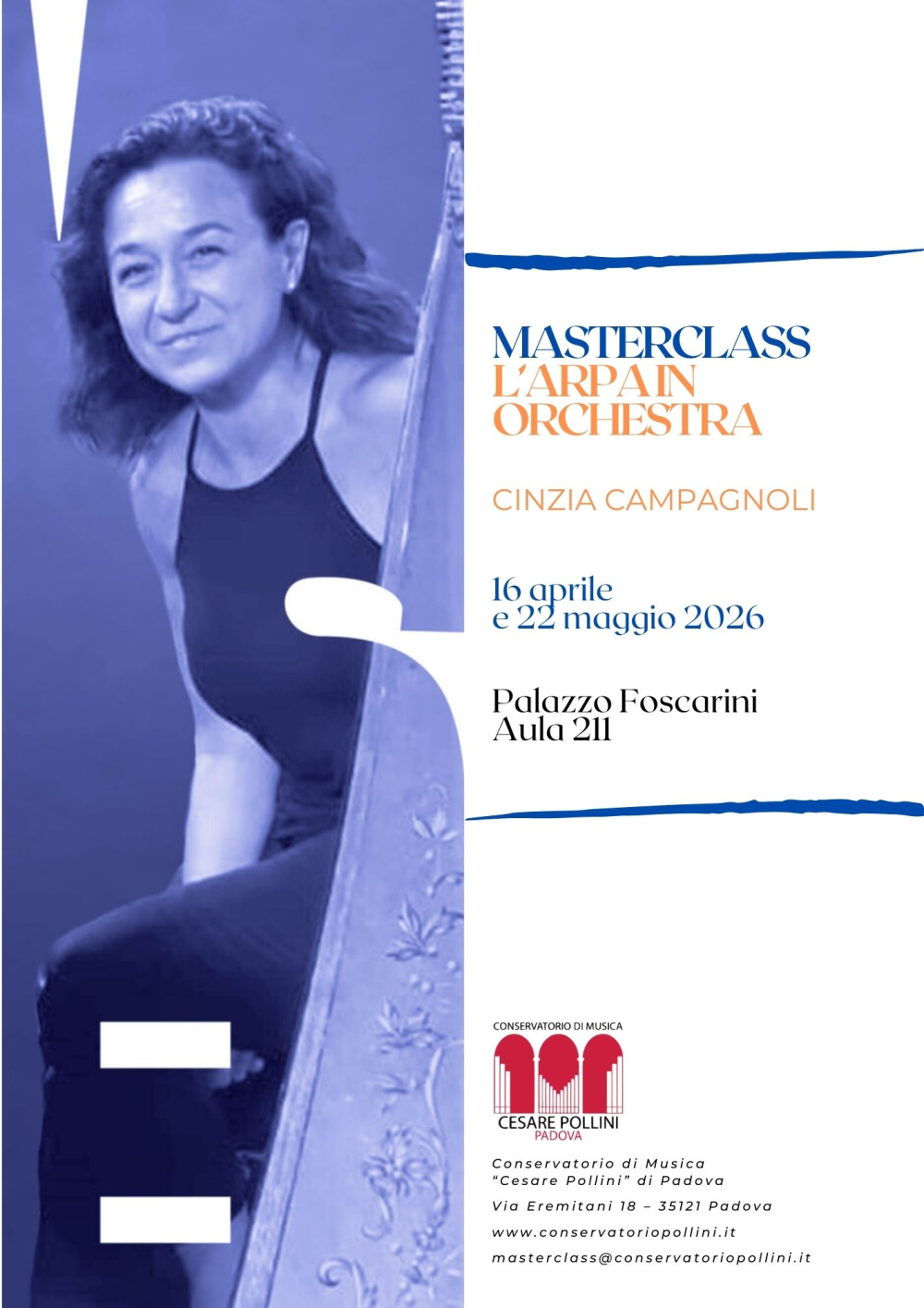 ISCRIZIONELa masterclass è aperta agli studenti iscritti al Conservatorio di Padova in qualità di partecipanti effettivi ed uditori. La frequenza dà diritto a 2 crediti per gli studenti effettivi, e 0,5 crediti per gli studenti uditori, se comprovata dal foglio presenze e pari ad almeno il 70% delle ore previste. Per gli studenti del Conservatorio di Padova non è previsto alcun versamento. Per gli studenti Esterni Uditori è prevista una quota di € 30,00 al giorno. Tutti i versamenti devono essere effettuati tramite bonifico bancario IBAN: